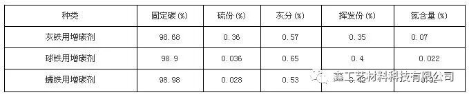 表1所列是某厂现使用的增碳剂种类,普通煅烧石油焦增碳剂主用于部分灰铸铁件的生产,石墨化石油焦增碳剂主要应用于球铁、蠕铁件的生产。